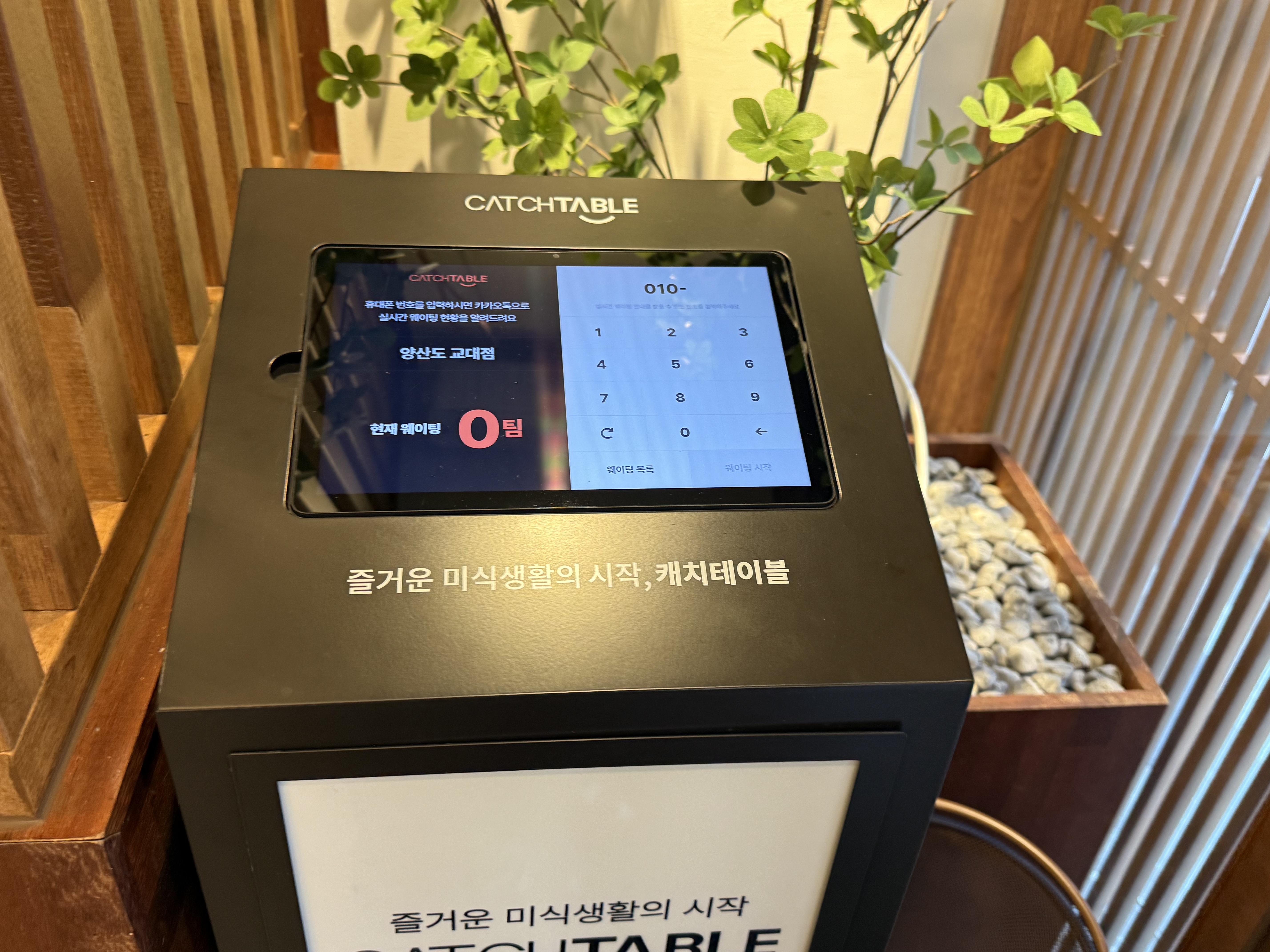 입구에는 캐치테이블이 설치되어 있어서 점심 피크 시간대 웨이팅이 있을 때는 캐치테이블로 예약해두고 대기하면 된다.