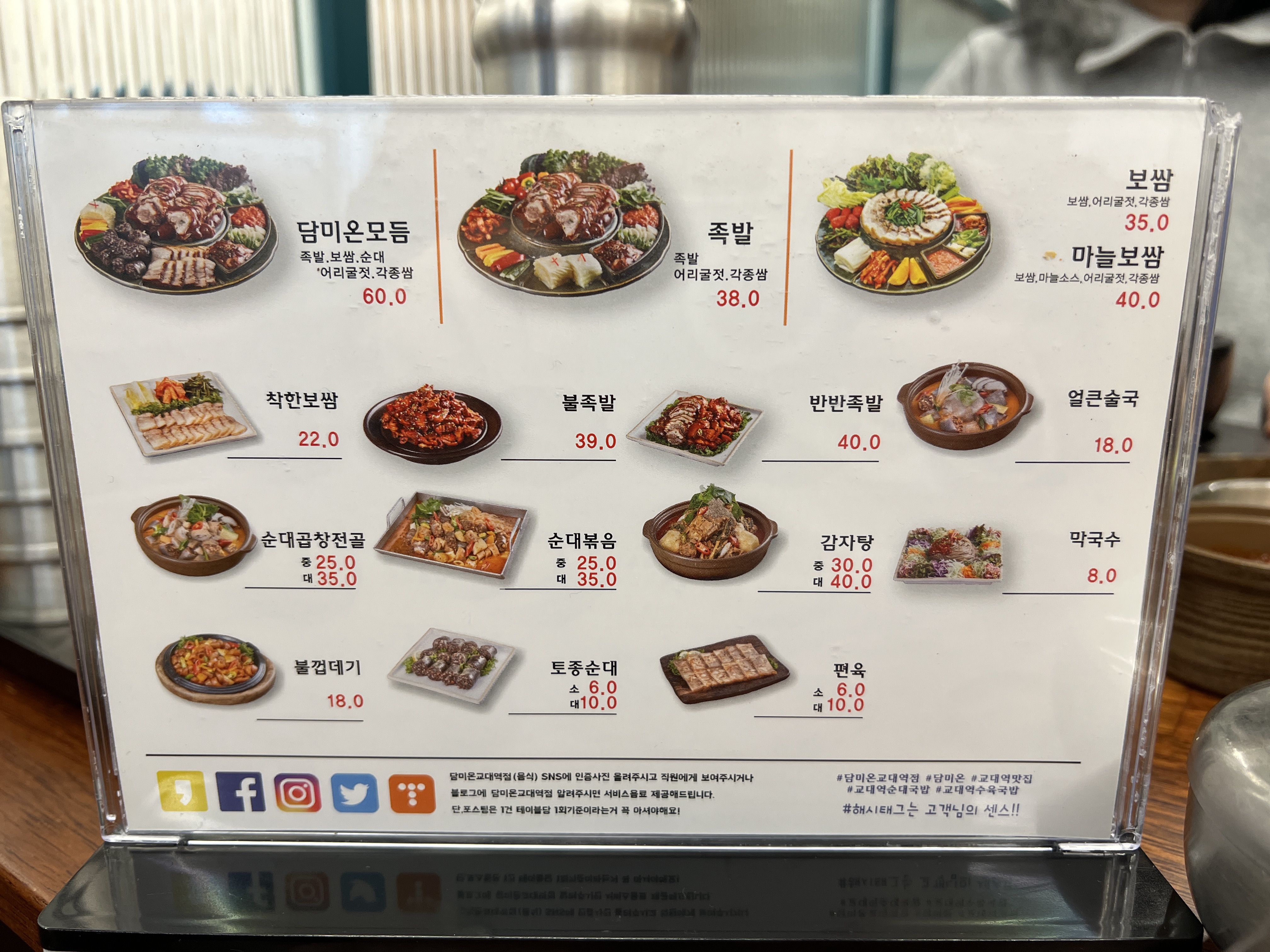 3. 서울 교대역 3번, 4번, 7번 출구 맛집 담미온 메뉴판