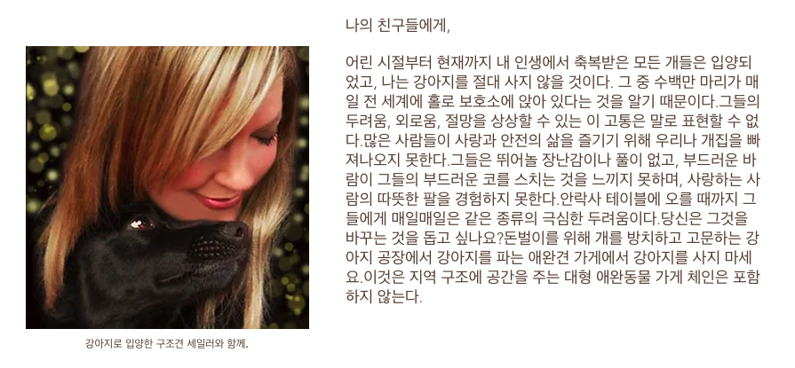 반려동물을 사지 말고, 유기견을 입양해서 함께하자는 취지에서 만들어진 매년 3월 23일 "국제 강아지의 날"은 반려가족이라면 의미있는 날이라고 할 수 있겠습니다.