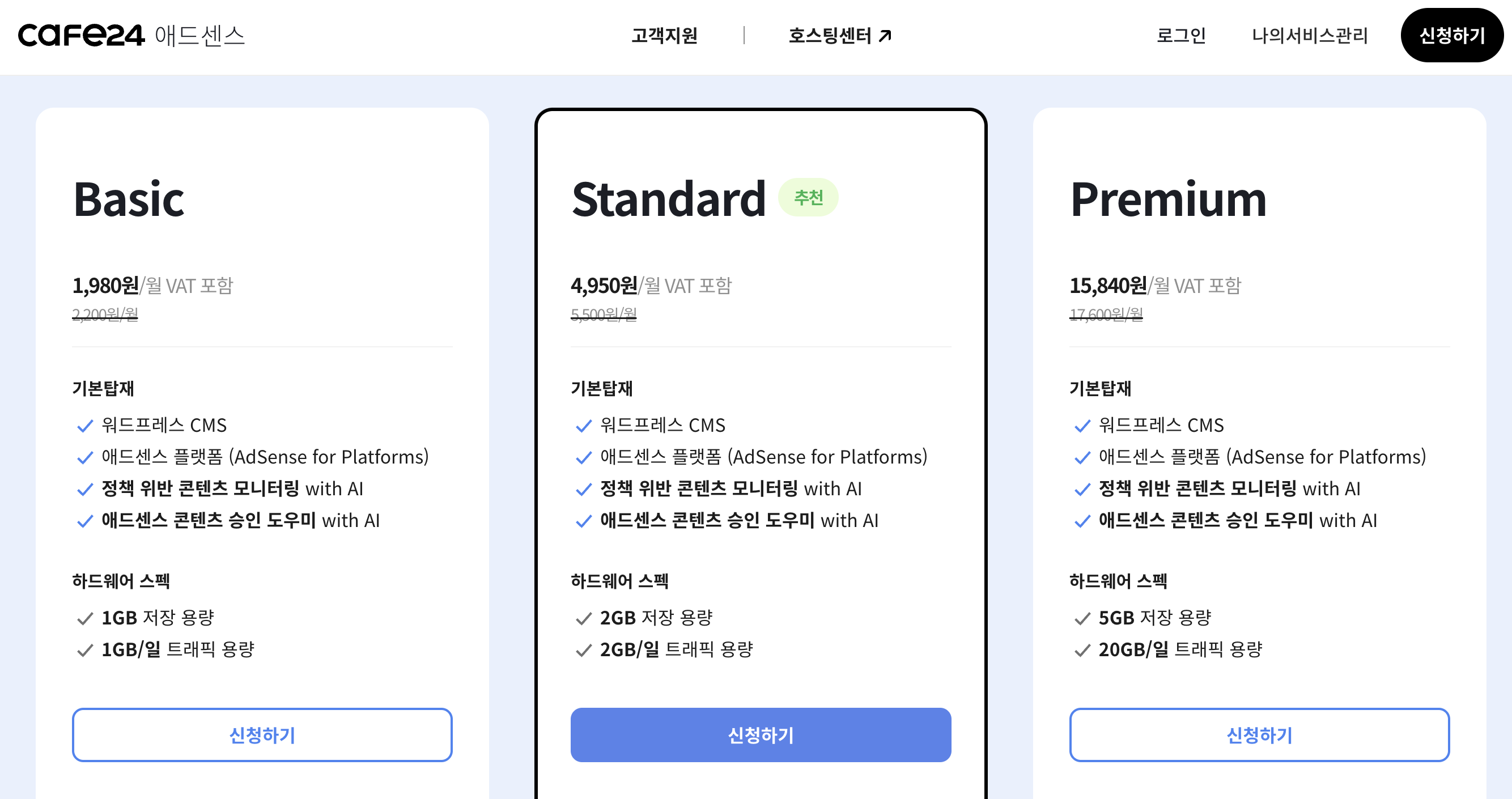 카페24 애드센스 워드프레스 호스팅