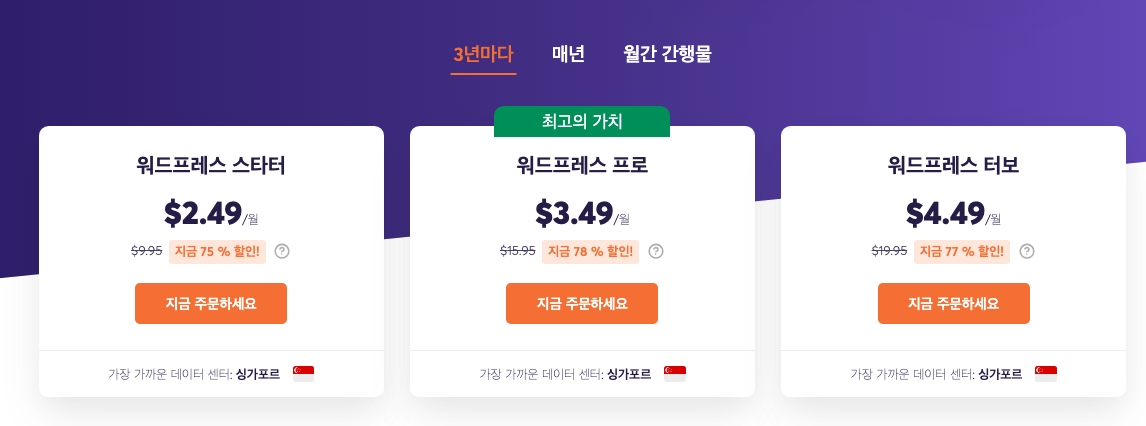 78% 할인된 가격으로 워드프레스 호스팅 가능