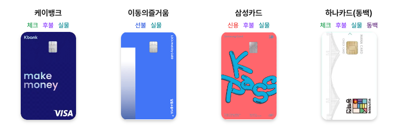 추가로 K-패스 발급 카드 종류는 아래 참고하세요